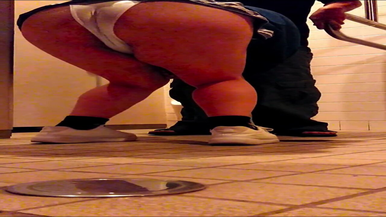 A young couple decides to film a naughty scene inside a public toilet stall. The girl, wearing her soaked panties, gives her boyfriend a aroused BJ while he films her every move. He then returns the favor by sucking her toes before they both seed on her butt.
